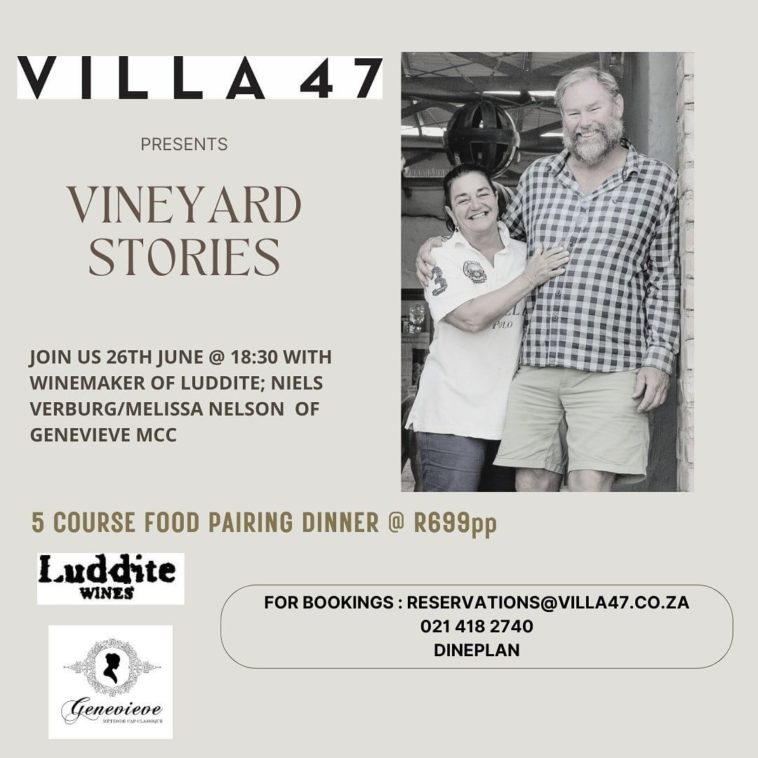 - Guests will have the rare opportunity to meet Niels Verburg, the winemaker and owner of Luddite Wines. Niels will share the fascinating stories behind each bottle, providing an intimate glimpse into the world of winemaking. His passion and expertise, combined with Villa 47’s culinary artistry, ensure an unforgettable evening of gastronomic delight.