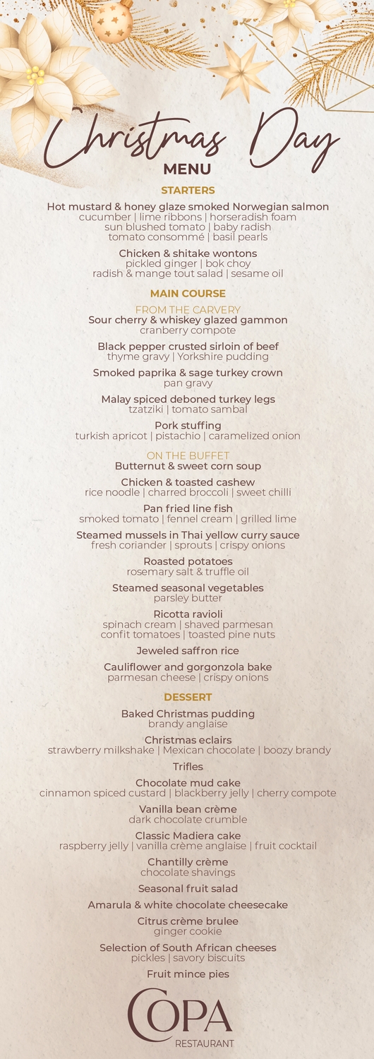 Christmas is meant for you to enjoy time with your loved ones and not stand in the kitchen making food for everyone. Rather let the culinary team of the Pepperclub Hotel spoil you this festive season with a delicious Christmas feast. COPA restaurant at The Pepperclub Hotel is offering an incredible buffet selection this festive season that the entire family will enjoy.