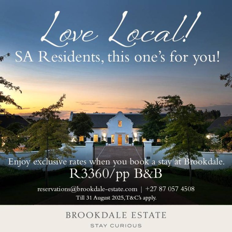 Tucked into the heart of the Cape Winelands, Brookdale Estate is offering an exclusive SA residents-only rate of R3360 per person (B&B).