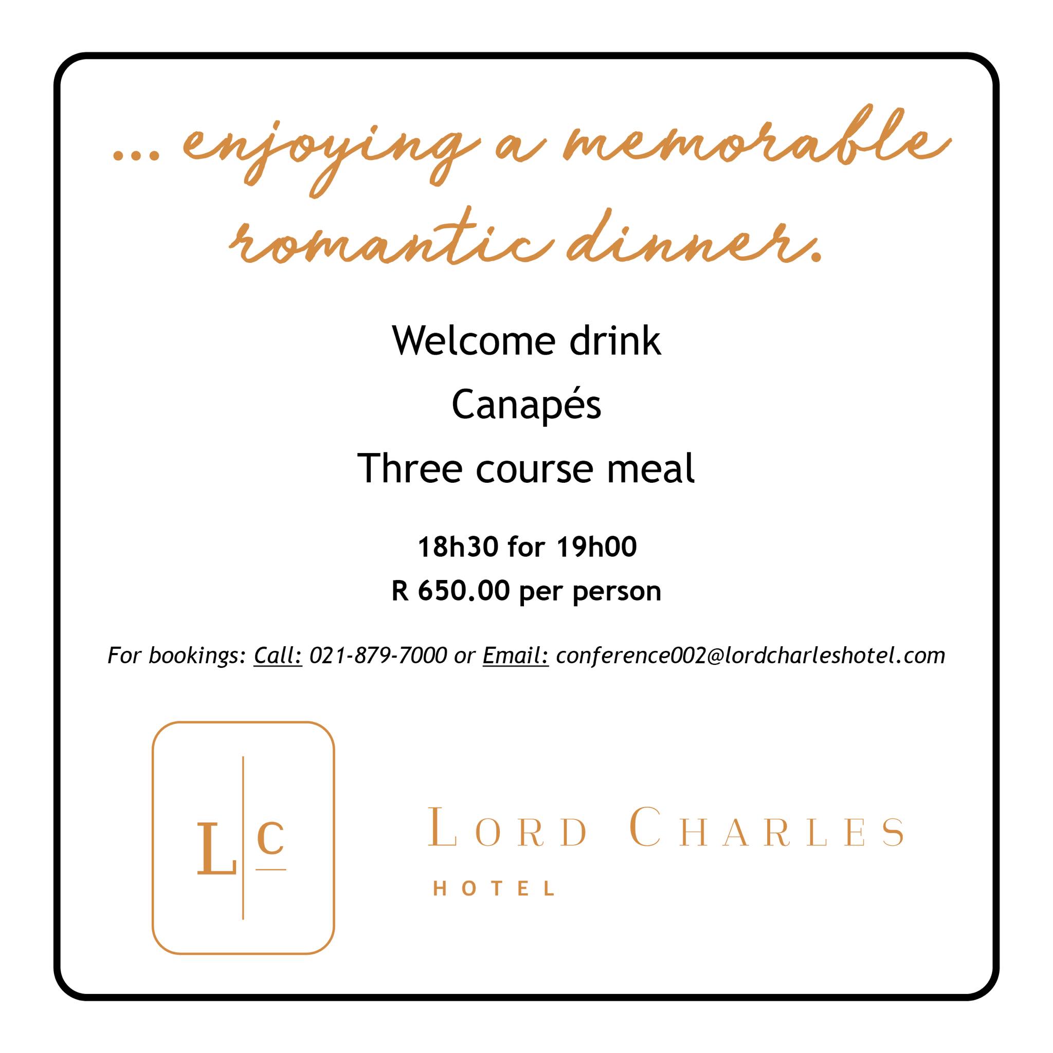 Love is in the air at Lord Charles Hotel, where couples are invited to indulge in a truly special Valentine’s dinner.