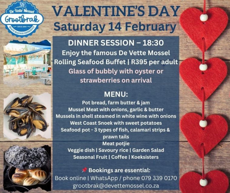 - At R395 per adult, the evening begins with a celebratory touch: a glass of bubbly on arrival, served with either an oyster or strawberries — because Valentine’s Day deserves a little sparkle.