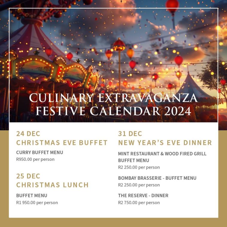 Priced at R1 950 per person, with children aged 12 and under enjoying half-price, this festive feast includes a welcome glass of Méthode Cap Classique and live entertainment from noon until close.