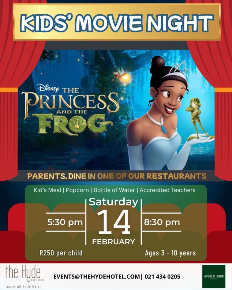 - The spotlight for the kids? A charming screening of The Princess and the Frog, complete with popcorn, a kid-friendly meal, and attentive supervision by accredited teachers. Designed for children aged 3 to 10, it’s the kind of evening that feels special, safe, and delightfully grown-up for them too.