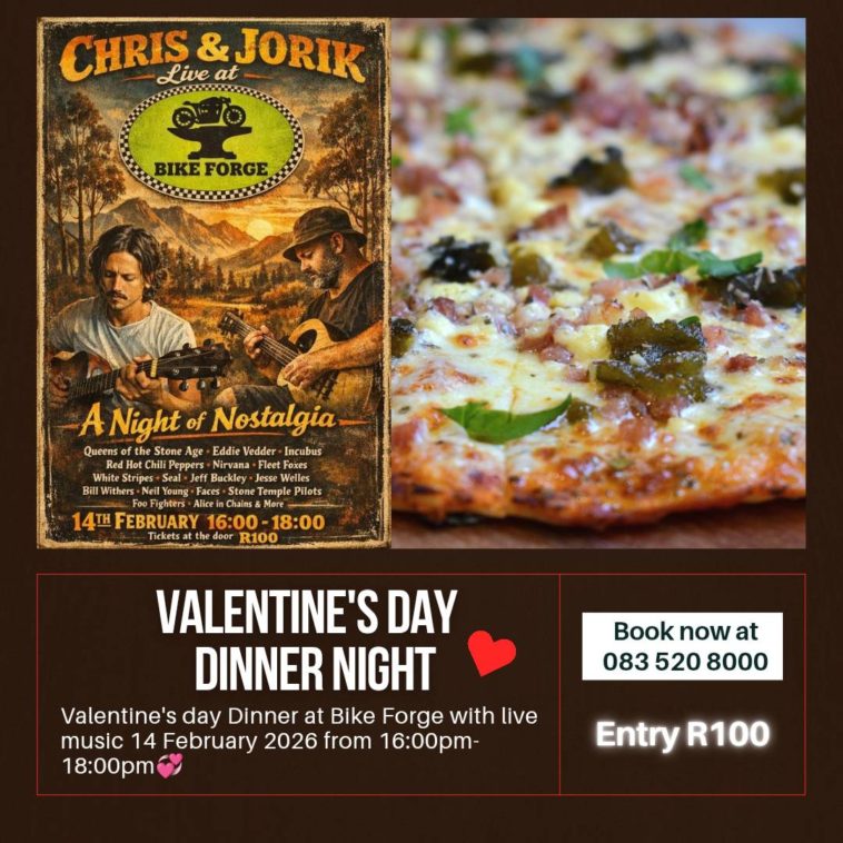 With an entry fee of R100, the event offers live music, great atmosphere, and good food all in one place. Whether it’s a first date, a long-time tradition, or just an excuse to enjoy live music and pizza together, Bike Forge’s Valentine’s celebration promises a laid-back take on romance.