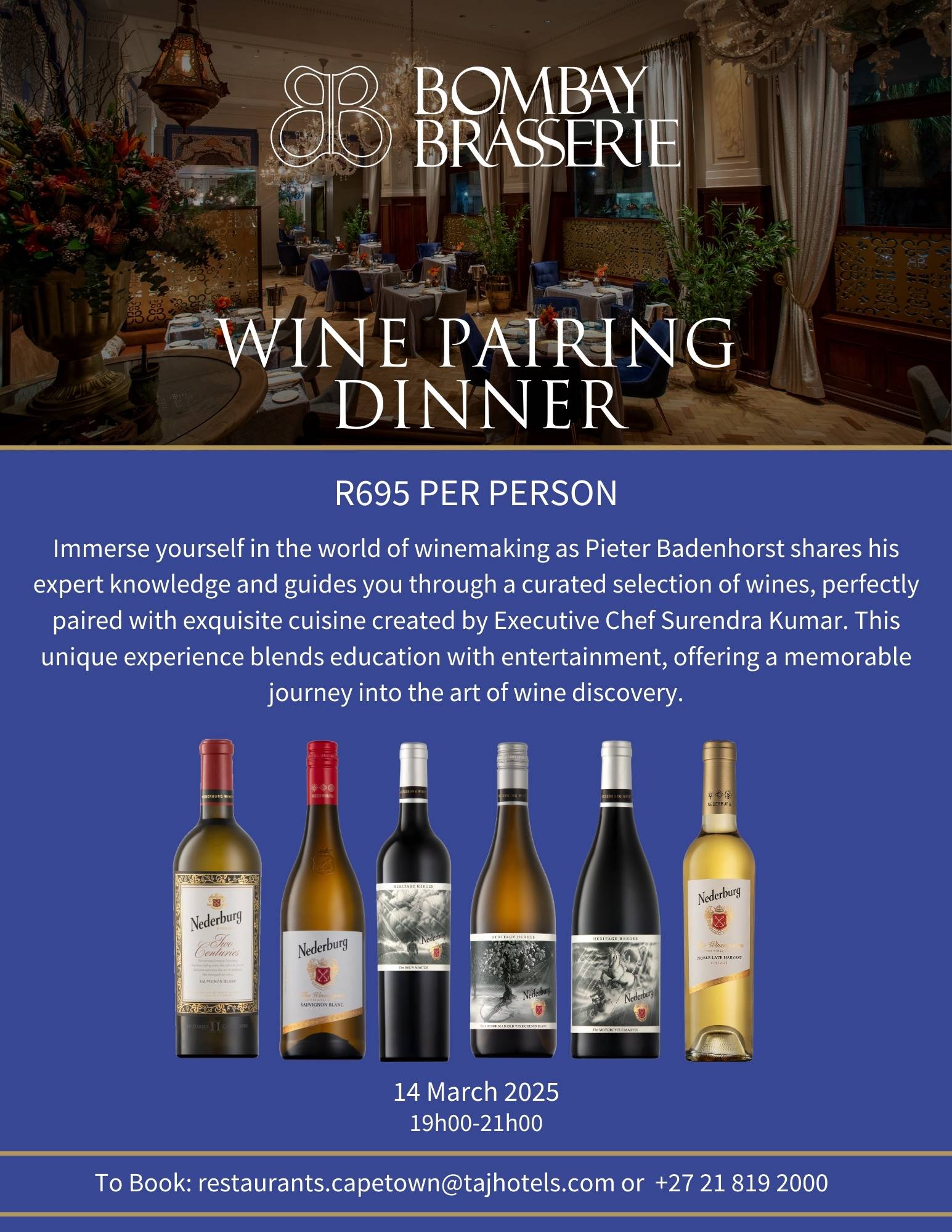 Raise a glass to fine wines, exquisite cuisine, and an evening of pure indulgence at Taj Cape Town’s Bombay Brasserie!