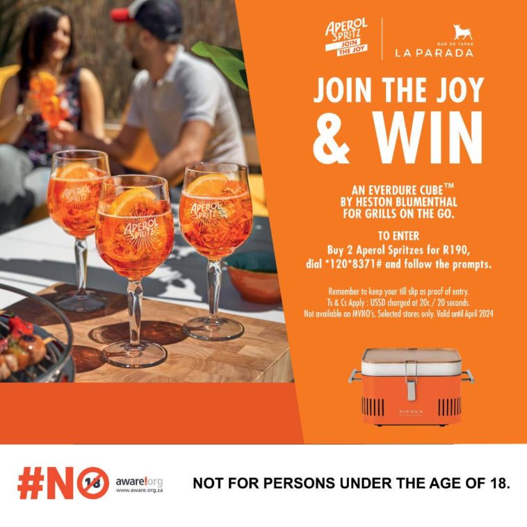 • By purchasing 2 Aperol Spritzes for just R190, all guests can enter to win an Everdure Cube by Heston Blumenthal, perfect for grilling on the go. To participate, simply dial *120*8371# and follow the prompts after you have made your purchase at La Parada. It’s that easy to enter and stand a chance to win this fantastic prize!
