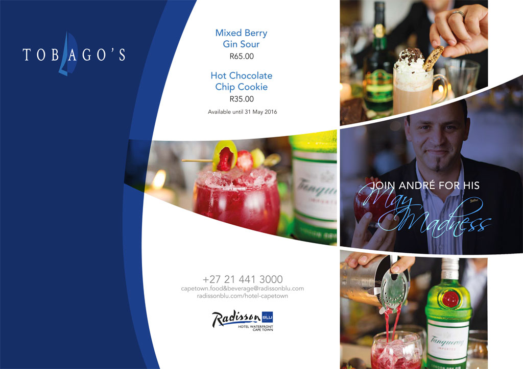But the restaurant & bar is also suitable for a leisurely drink with friends and Tobago’s have introduced the perfect drink during April. Join Andre as he prepares his delicious mixed berry gin sour which is available for only R65. Fruity, sour and sweet; a delicious combination. A hot chocolate chip cookie can also be ordered for R35 which goes down incredible well with a coffee of your choice.