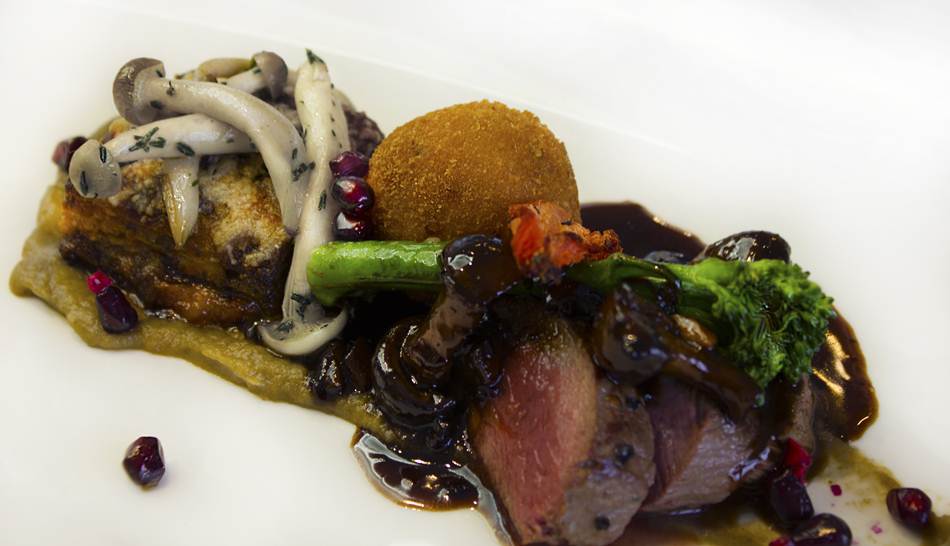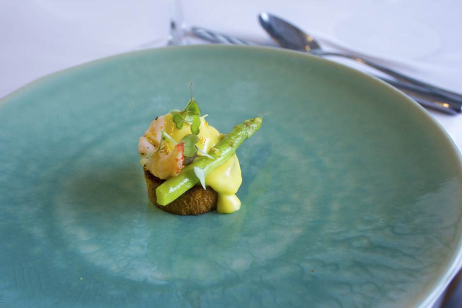 Brioche with poached marron and hollandaise5Grilled SpringbokCroissant and Butter Pudding