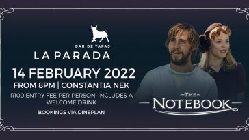 It’s romantic, it’s swoon-worthy, it’s THE NOTEBOOK! Join La Parada Constantia Nek for the screening of this classic film on Valentine’s Day and enjoy a romantic evening with your loved one or a fun outing with your ladies!💃 🌹Where: La Parada Constantia Nek 🌹Time: 8pm 🌹Ticket price: R100 per person (includes a welcome drink) Book […] More