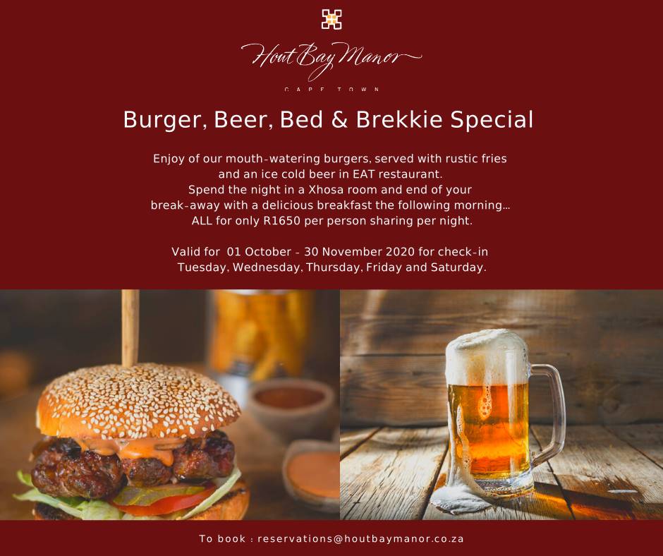 Enjoy a luxury break and a burger & breakfast at Hout Bay Manor!