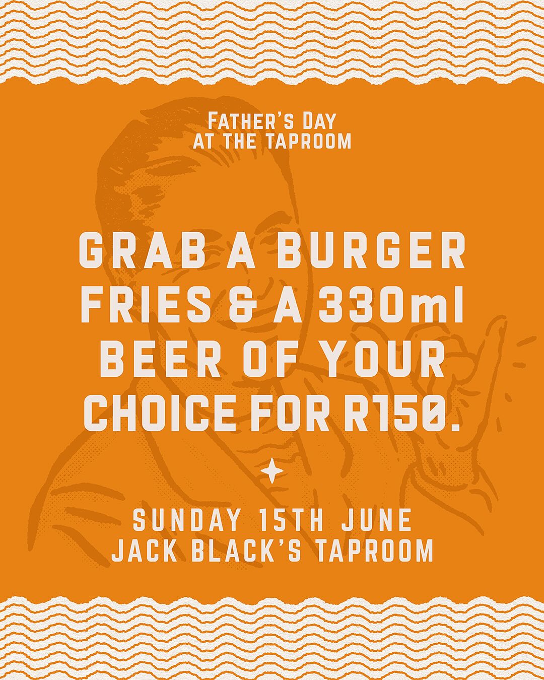On Sunday, 15 June, head over to the Taproom and treat Dad to a proper feast: a juicy burger with fries and a 330ml Jack Black beer of his choice — all for just R150. That’s not just lunch; that’s a high-five in meal form.