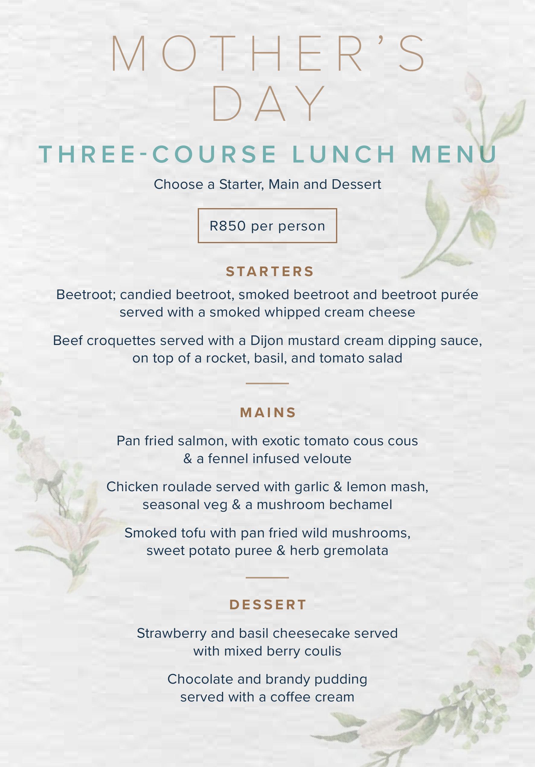 The experience commences with a complimentary glass of the estate’s signature Cuveé58 Brut Cap Classique for every mother on arrival. This sparkling tribute sets the stage for a Mother’s Day menu that focuses on sustainable, sun-ripened produce and artisan ingredients sourced from the Western Cape.