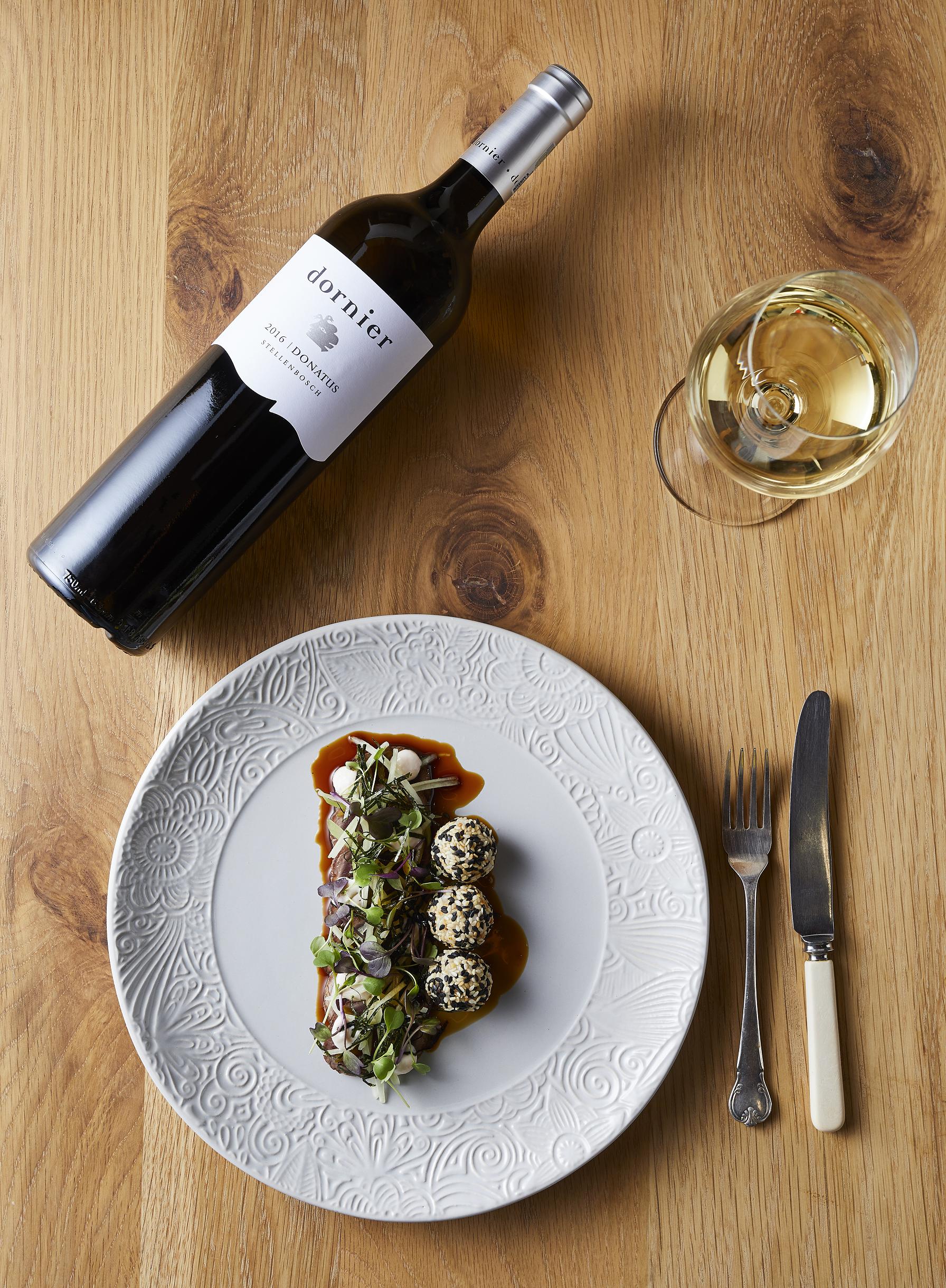 Imagine a starter of Pan Seared Kudu Tataki with Ponzu, Sesame Seeds, Sushi Rice, Cucumber, Jalapeno, Pickled Ginger Mayo & Nori, paired with Donatus White; followed by a main of Wild Mushroom & Ricotta Filled Tortellini with a Truffled Cauliflower Velouté, Sauteéd Shiitake, Peas, Green Asparagus, Cauliflower Florettes & Lemon Vinaigrette, paired with Dornier Sémillion.