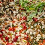 Coconut & citrus broth, daikon, tempeh, smoked miso, sprouts, Shimeji mushroom, lemongrass oil and salted potato.