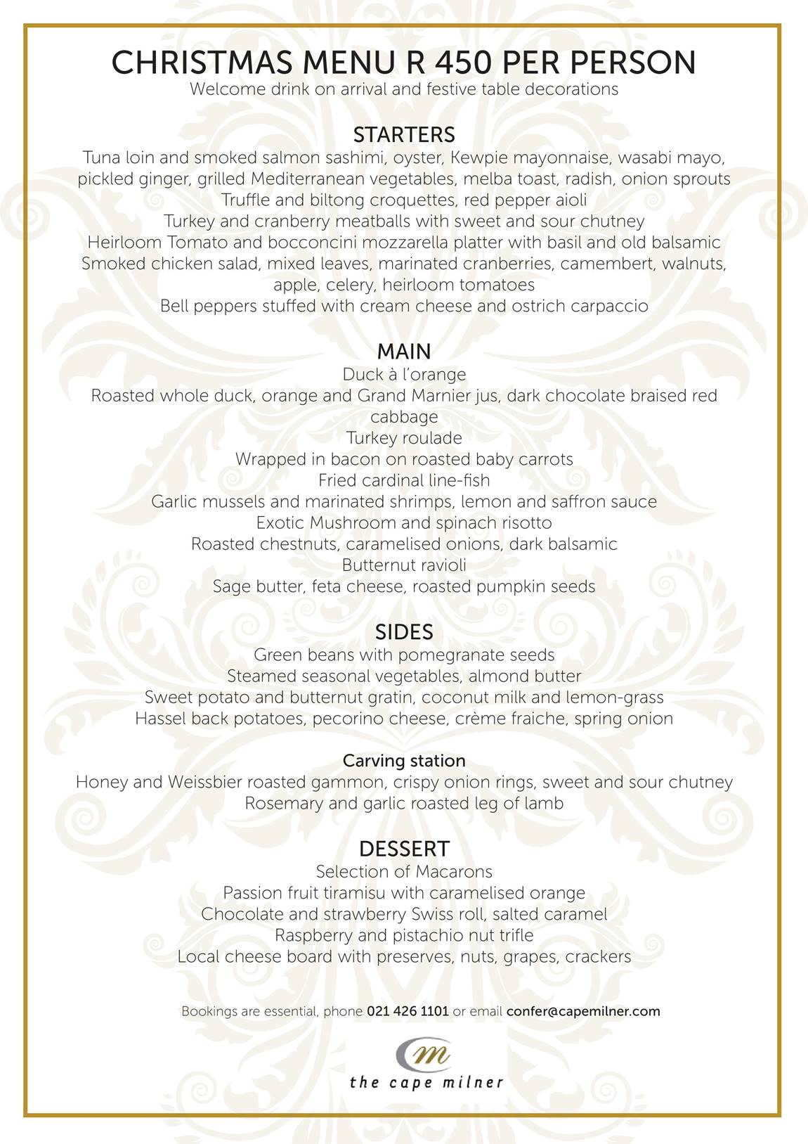 The Cape Milner is celebrating Christmas with a festive luncheon this year, join them for a delectable, stress-free meal.