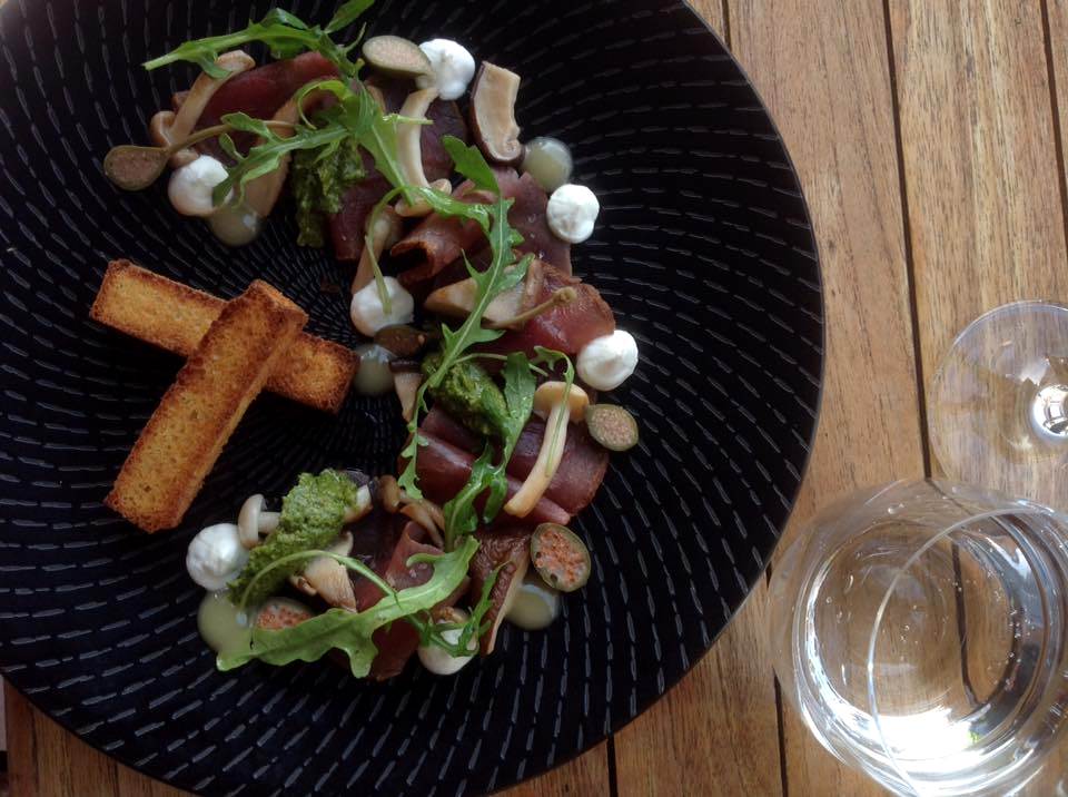 The meat itself was excellent quality and the smoke was light and flavoursome. I found it and the pickled mushrooms very strong, but that’s probably because kudu isn’t my favourite. My feelings aside aside, this was an excellent dish, I loved the cream cheese, caper berries and truffle vinaigrette – a unique combo and beautifully presented.