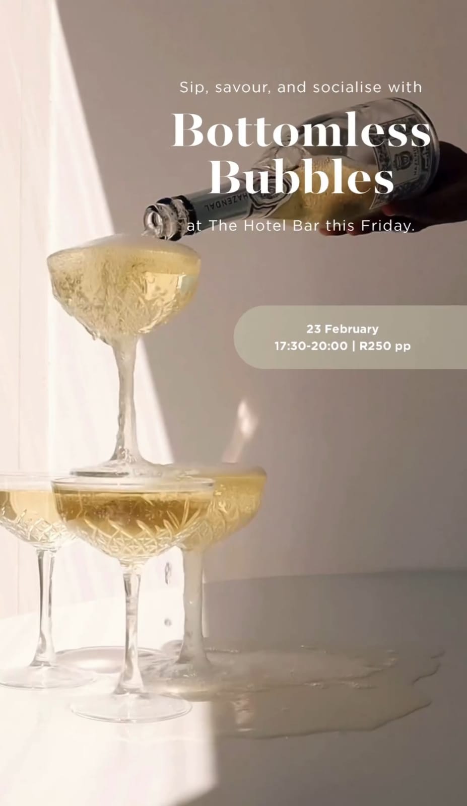 On Friday, 23rd February, from 17:30 to 20:00, The Bar invites guests to elevate their evenings with a special offer – bottomless bubbly for only R250 per person.