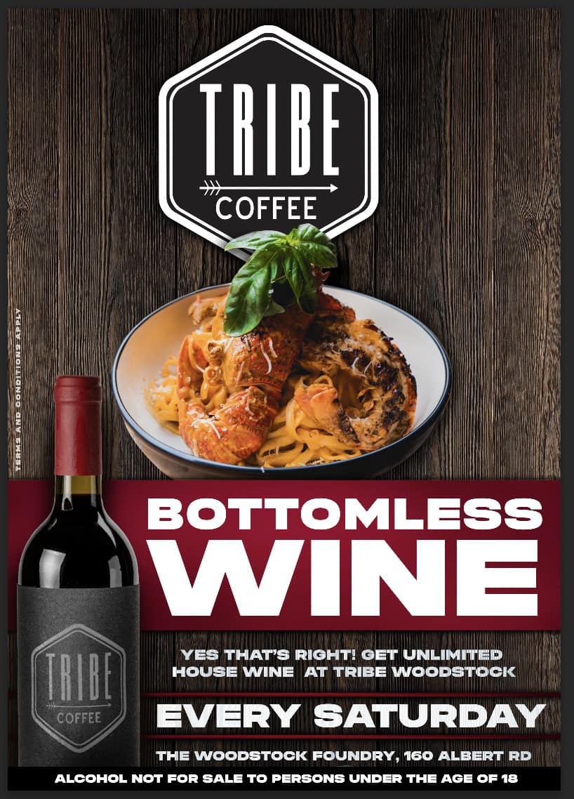 Enjoy bottomless house wine at Tribe Woodstock for only R150.