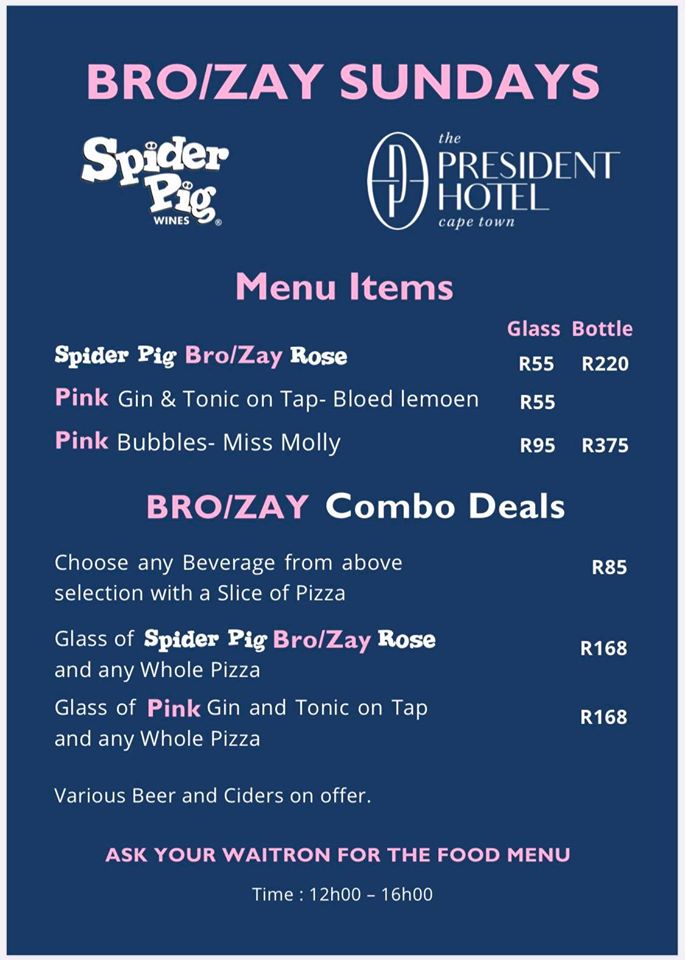 Sass up your Sundays with Spider Pig Wines and President Hotel Cape Town