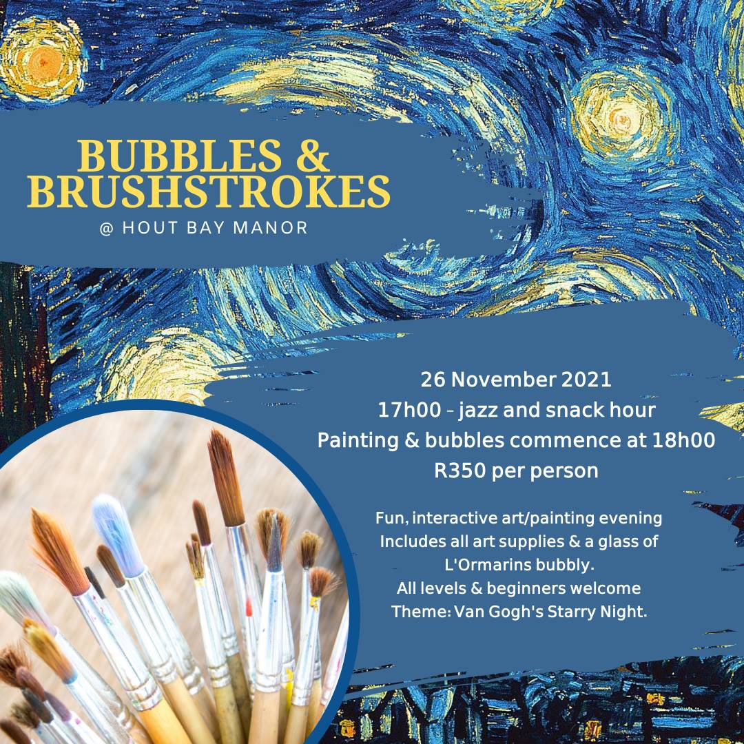 Let your creative juices flow at The Hout Bay Manor this November as they are hosting an artistic evening centred around Van Gogh’s Starry Night. All levels of artists are welcome at this fun and interactive evening. All painting equipment will be supplied as you sip on some L’Ormarins Bubbly and enjoy an incredible evening!