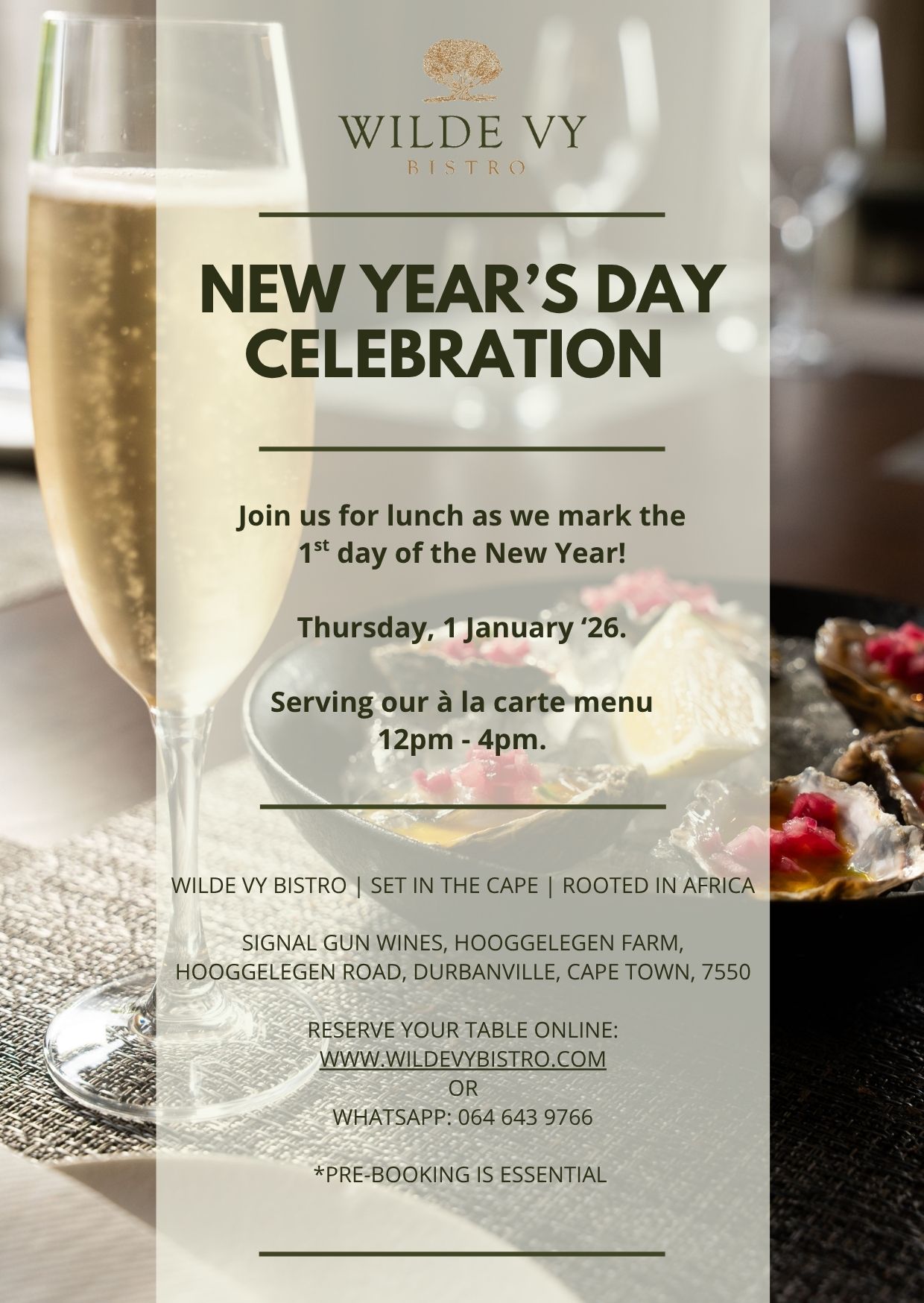 New Year’s Day often comes with lofty resolutions, but Wilde Vy Bistro keeps things simple: sit down, savour something delicious, and let the rest follow in its own time. Whether guests choose a long lunch with friends, a quick bite between outings, or a celebratory toast to the clean slate ahead, the bistro offers a setting that makes the first hours of 2026 feel unhurried and hopeful. And really, if the year starts with a good meal, it’s already headed in the right direction.