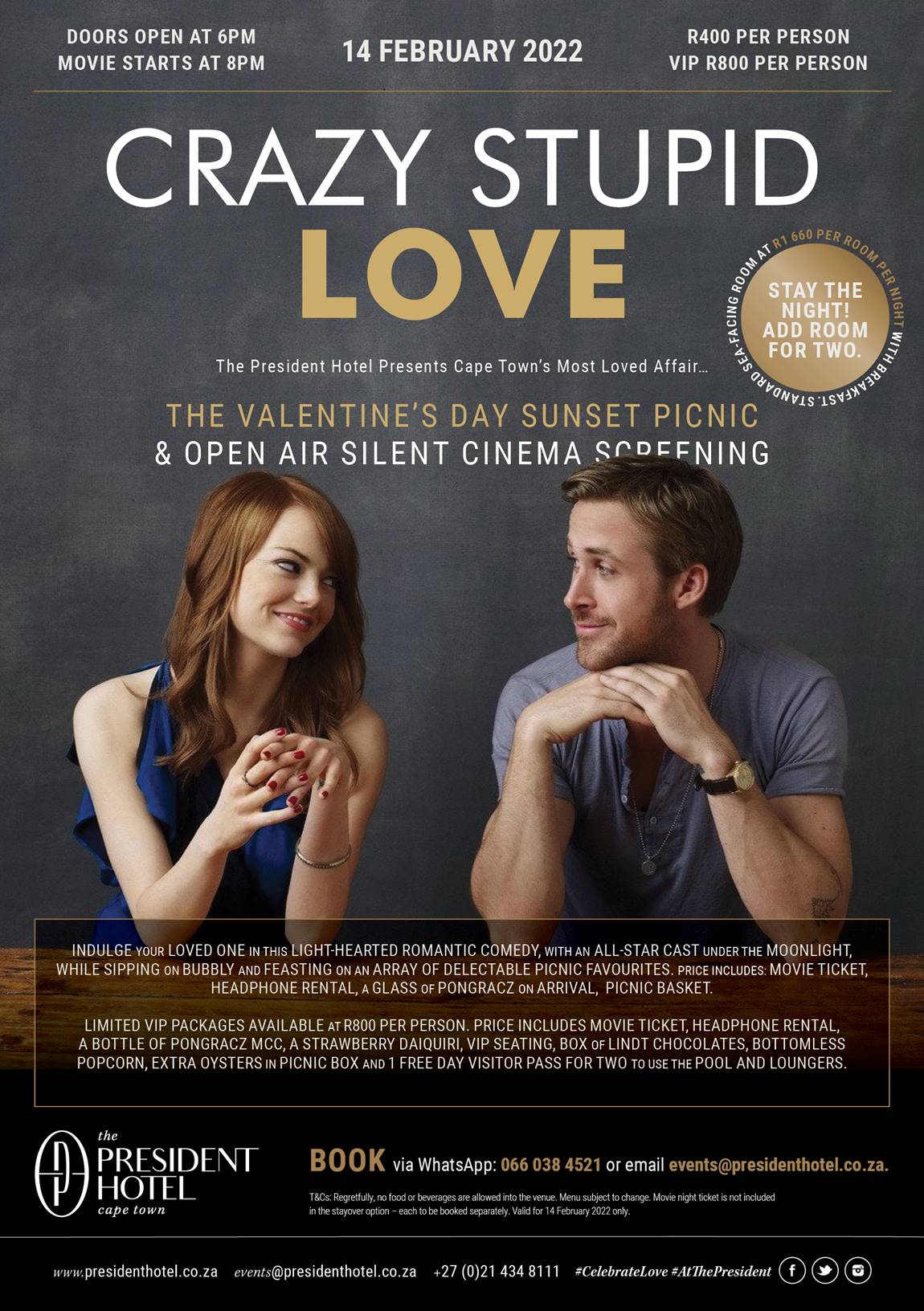 Enjoy the light-hearted romantic comedy, Crazy Stupid Love, while sipping on bubbly and feasting on delectable picnic favourites.