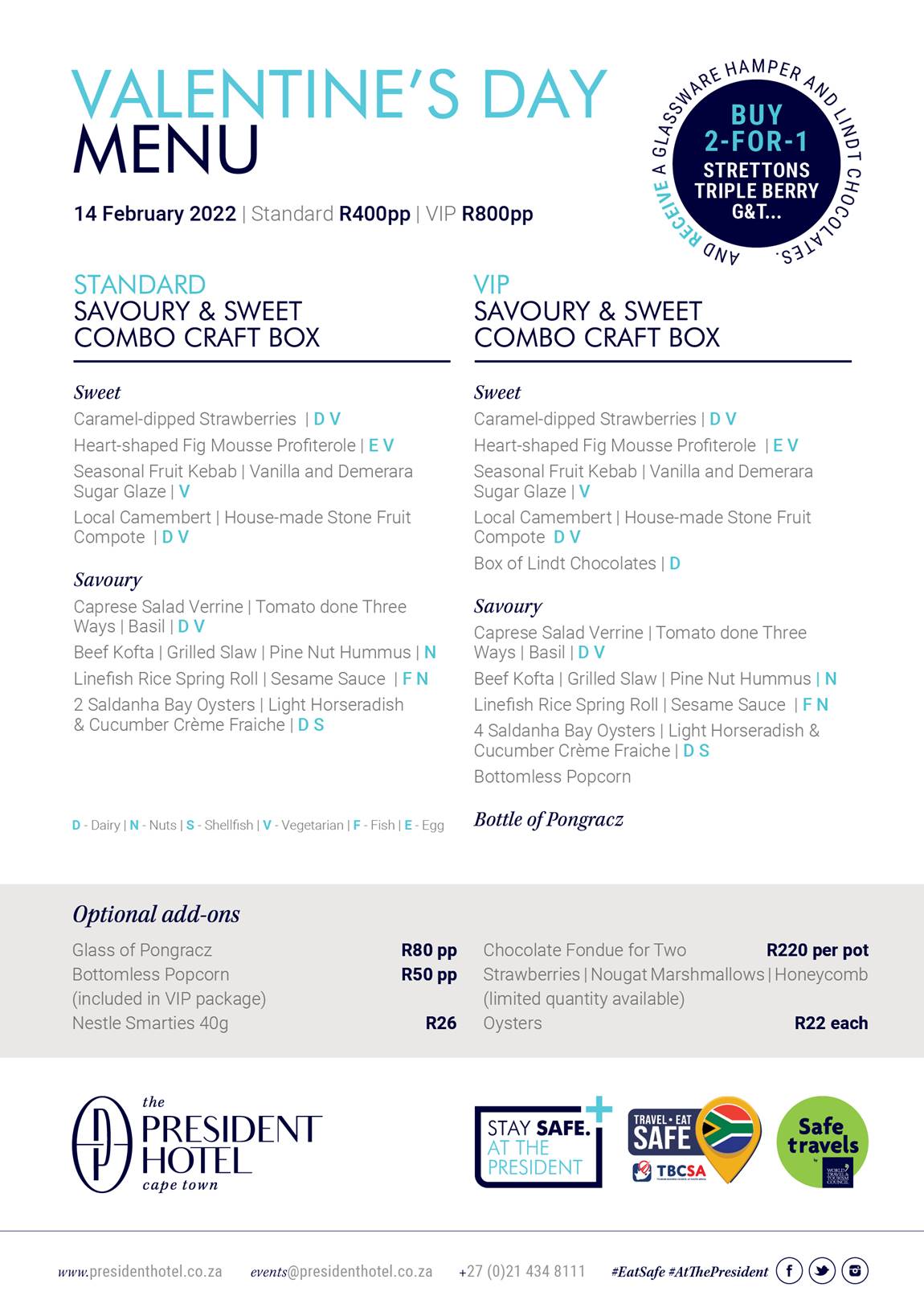 BOOKING ESSENTIAL: WhatsApp: 066 038 4521 or email events@presidenthotel.co.za.