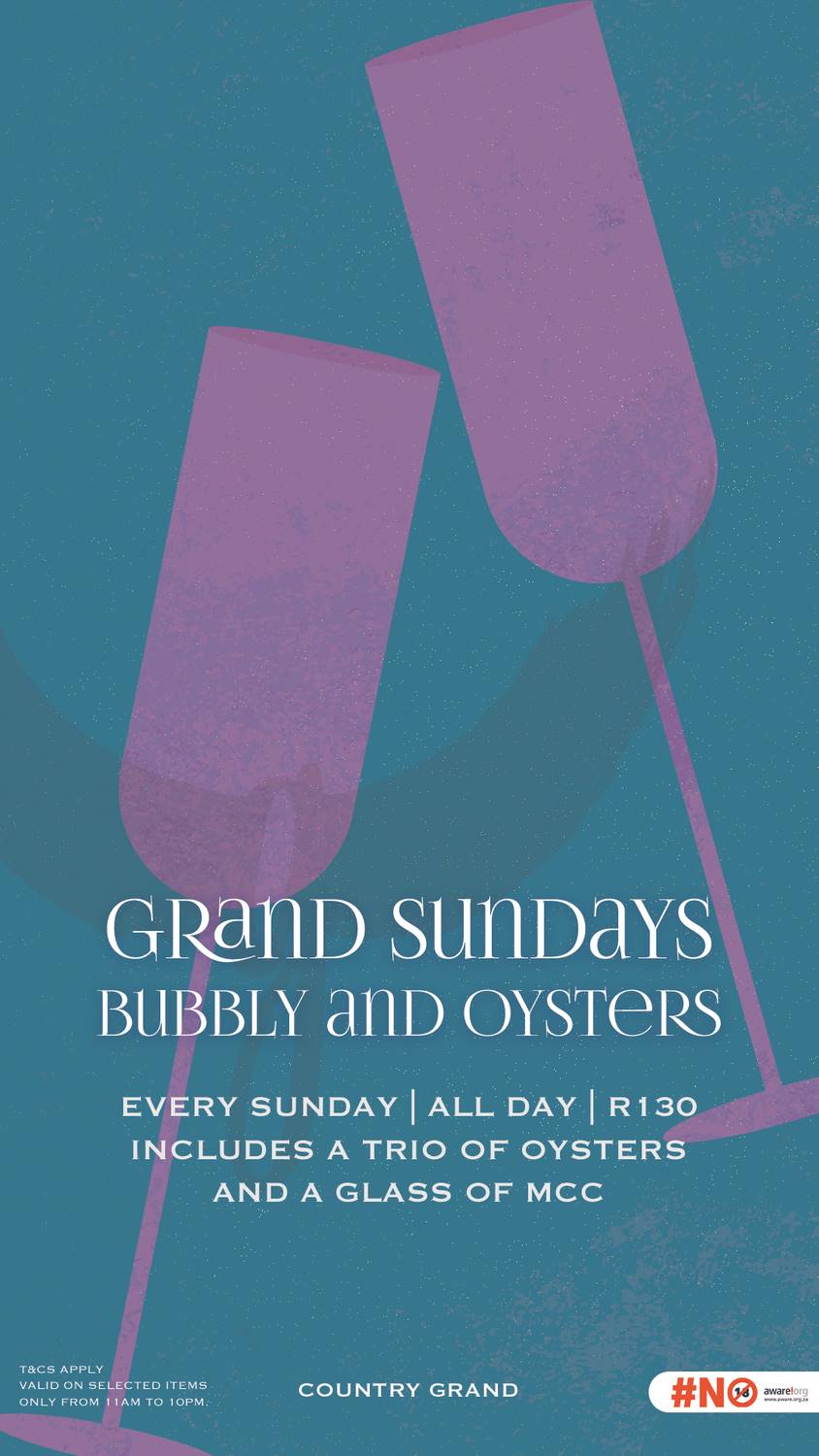 Are you looking for a fun, luxurious day out with your friends and family? Join Country Grand every Sunday for their Grand Sundays! Relax into your chair and enjoy the beauty of this gorgeous venue, sipping on some refreshing MCC and enjoying some delicious oysters.
