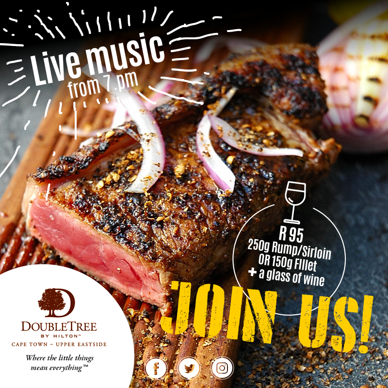 Join Liberty’s for their Thursday Night Burger Special that includes their famous burger and chips with a pint of Jack Black, for only R110. Another incredible special on offer is their Tuesday Steak and Wine Night; get 250g rump/sirloin or 150g fillet for with a glass of wine for R95! Both specials coincide with Liberty’s Live Music nights to make for a festive experience.
