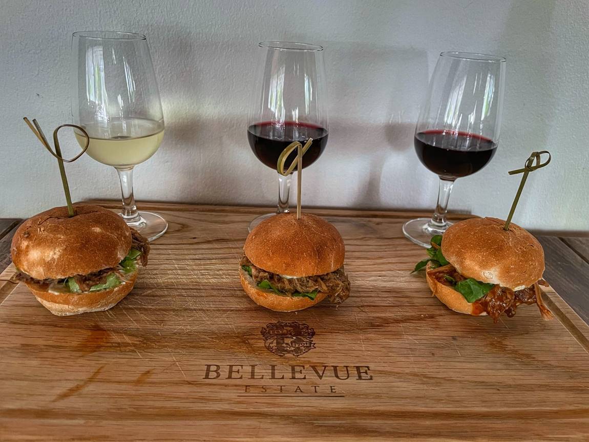 Enjoy a Lamb and tzatziki slider with the Bellevue Sauvignon Blanc, a Pork slider with the Bellevue Cinsaut, and last but not least, a Beef Brisket burger with the Bellevue Shiraz.