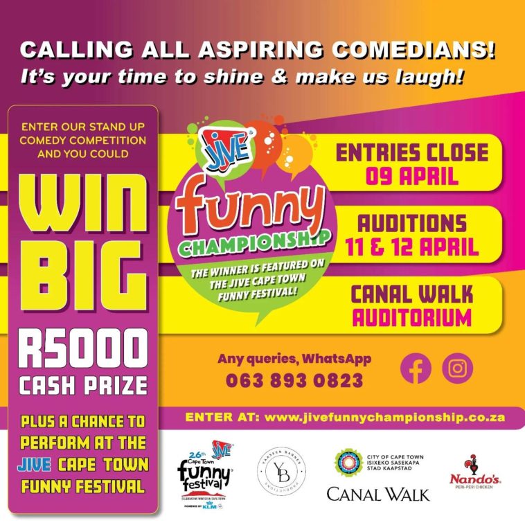 For more information on how to enter, visit the JiVE Cape Town Funny Festival website: https://funnyfestival.co.za/ or follow the Funny Festival on Facebook: https://www.facebook.com/jivefunnychampionship