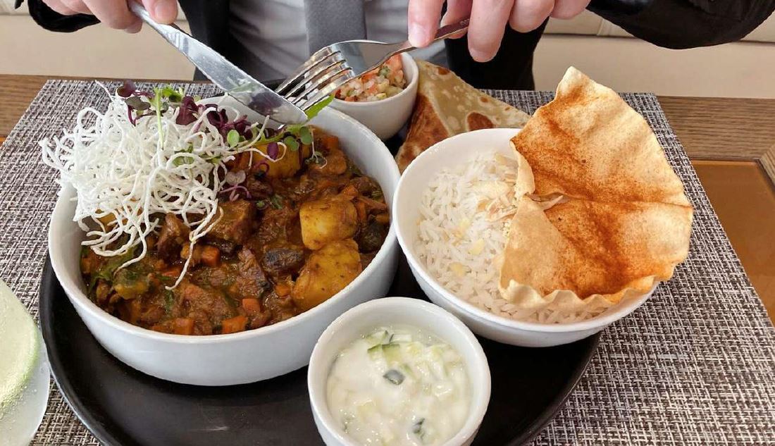 Traditional Cape Malay Chicken curry with potatoes and peas. Lamb shoulder, butternut, carrot and yoghurt curry. Roast vegetable, yellow lentil spinach and chickpea ( A choice of 1 per person). Served with tomato, red onion and coriander salsa, cucumber riata, roti, lemon and almond scented rice and spiced poppadum.