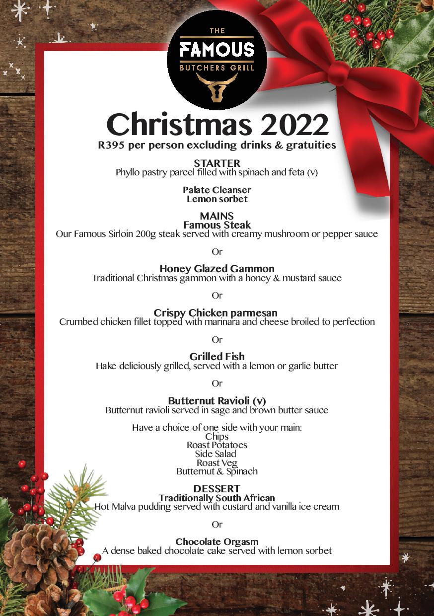 Enjoy a 3 course Christmas lunch at The Famous Butchers Grill.