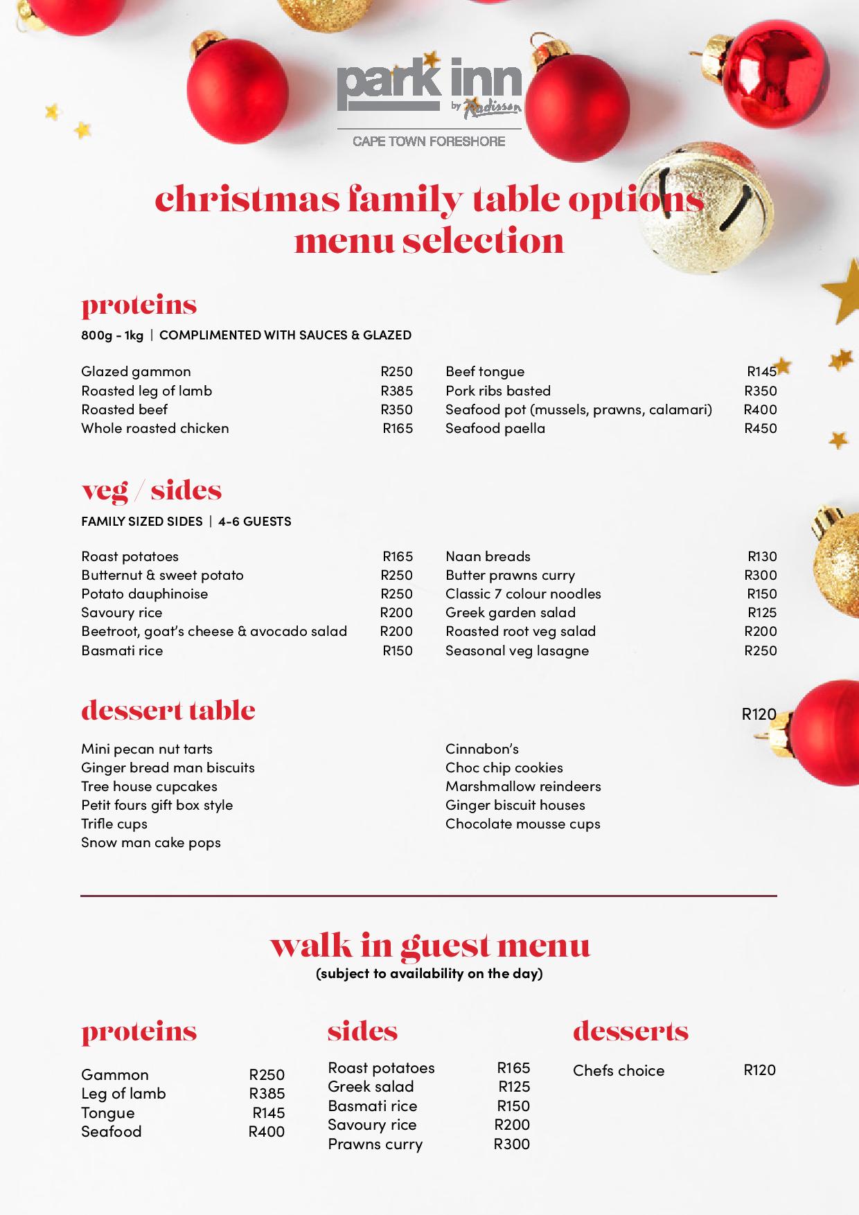 The Park Inn by Radisson Cape Town Foreshore is a 4-star hotel, located in Cape Town’s CBD, just minutes from the CTICC & the V&A Waterfront, perfectly situated for a holiday destination. It is also the perfect spot to host your Christmas lunch where the entire family is welcome to join.
