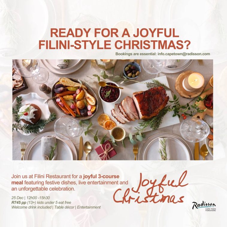 - This exclusive event takes place on December 25th from 12:00 to 15:30, priced at R745 per adult (children under five dine for free). With its lively ambiance, incredible food, and special touches, Filini’s Christmas lunch promises to be a celebration to remember. While you savour your meal, enjoy the sounds of live entertainment, adding a joyful rhythm to your Christmas Day experience.