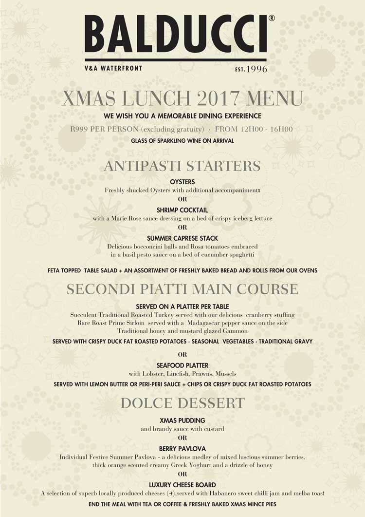 Celebrate Christmas Day at the V&A Waterfront with Balducci.