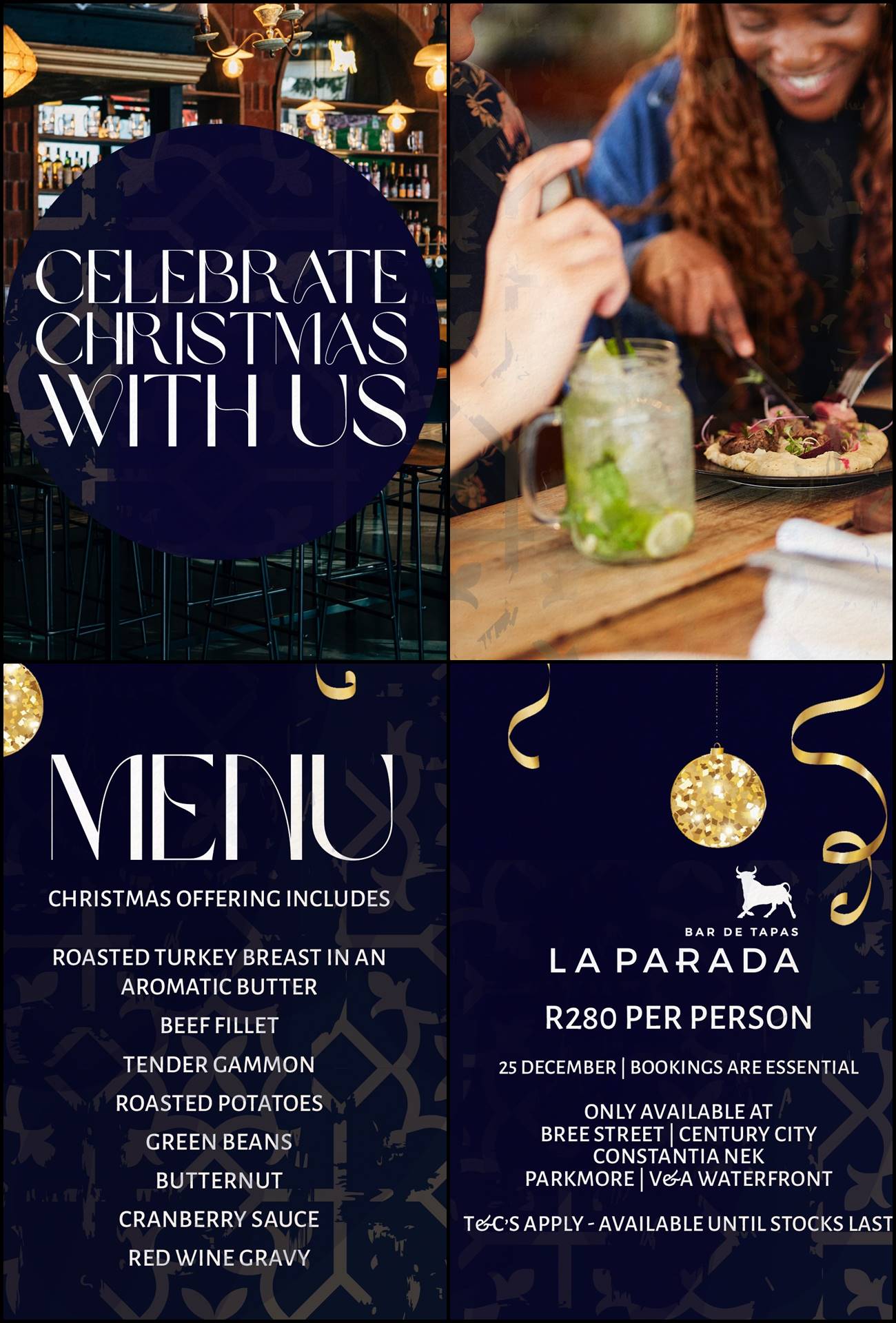 Don’t miss out on this delicious Christmas lunch at La Parada. Book your spot now and get ready to enjoy a festive feast with all of your favorite holiday dishes.