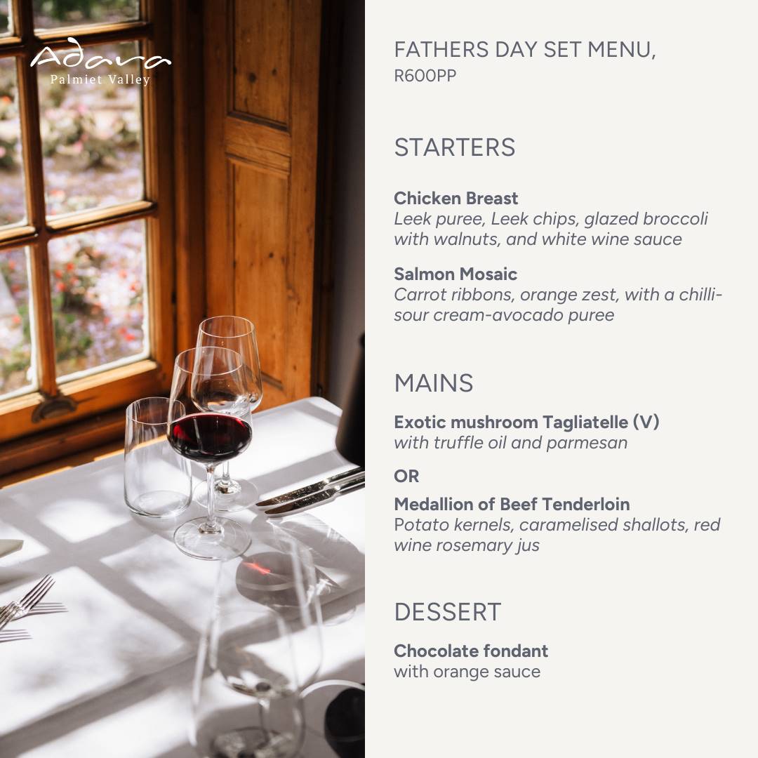 Located amidst the stunning landscapes of Adara Palmiet Valley, this Father’s Day dining experience promises not just exceptional food, but also a serene and beautiful environment.