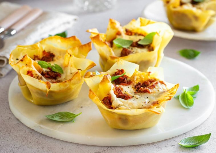 - Bake for 20-25 minutes until the lasagne cups are bubbling and golden brown.