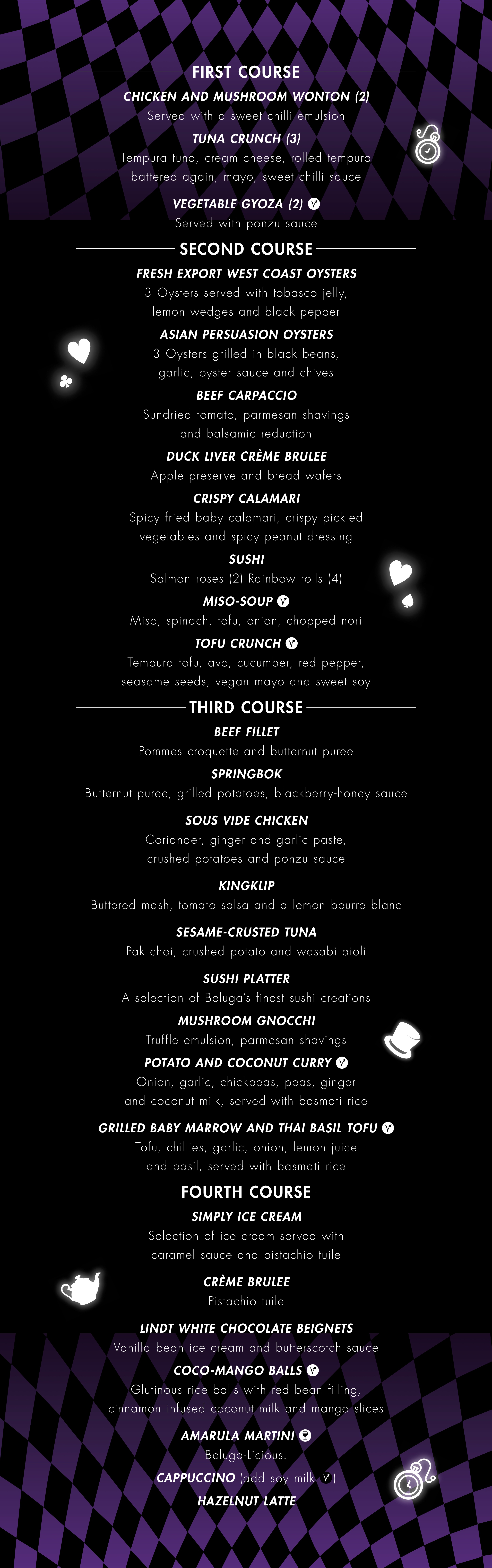 Your table is yours for the evening and the evening will start once you arrive, to party into the New Year. The evening will be an Alice and Wonderland themed evening where guests are encouraged to dress glamorously and according to the theme if you so choose. They have a DJ, dancefloor, entertainment and more, and you’re welcome to party well into the New Year as we will close the venue once the last patron has left!