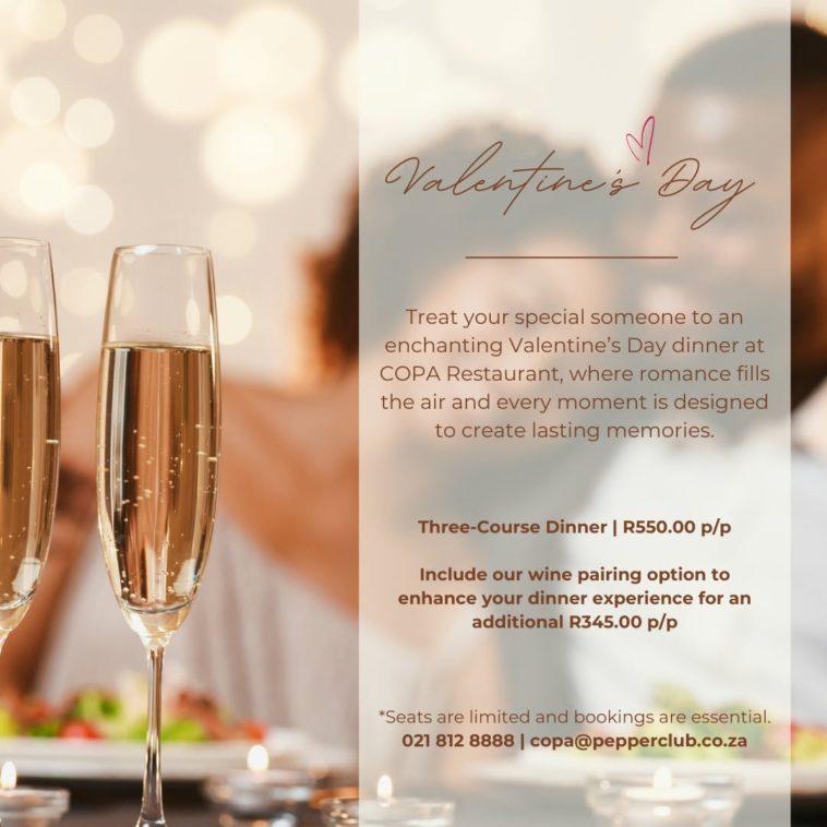 With its intimate ambiance, exceptional cuisine, and attentive service, COPA creates the ideal backdrop for a night of romance and connection. Whether it’s a first Valentine’s or a well-loved tradition, this is your chance to make the day truly special. Seats are limited, so booking in advance is essential. Reserve your table today by contacting COPA at 021 812 8888 or via email at copa@pepperclub.co.za.