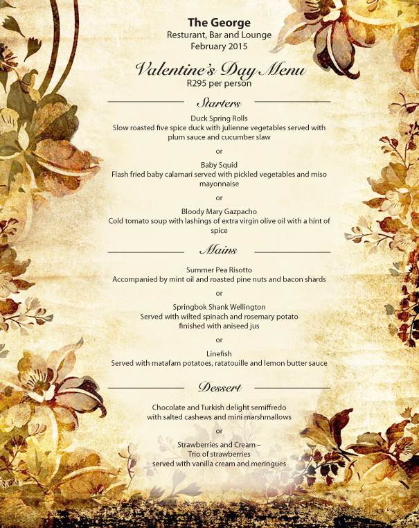 George Restaurant News Green Point Restaurant News Romney Park Restaurant News Valentines Day Cape Town Restaurants