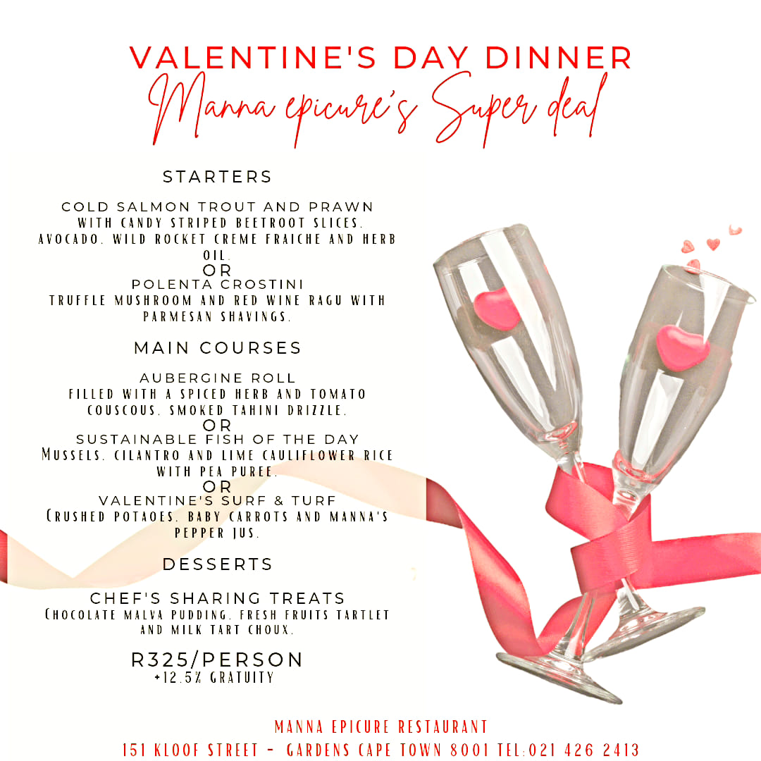 Manna Epicure will be offering a 3 course dinner on the 14th February
