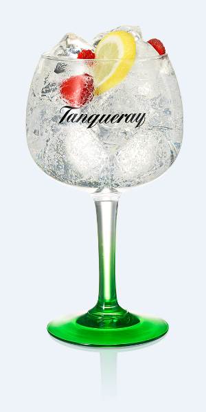 Tanqueray London Dry Gin, Tonic, lemon, raspberry, ice and Copa glass.