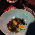 Next, guests were served Chef Hill’s first course of paaper and smoked fish cream with a drizzle of a soy dressing paired with Lubanzi’s rosé bubbles, a delightful wine made with cinsault grapes from the Swartland region, that has fresh notes of strawberry and cherry.