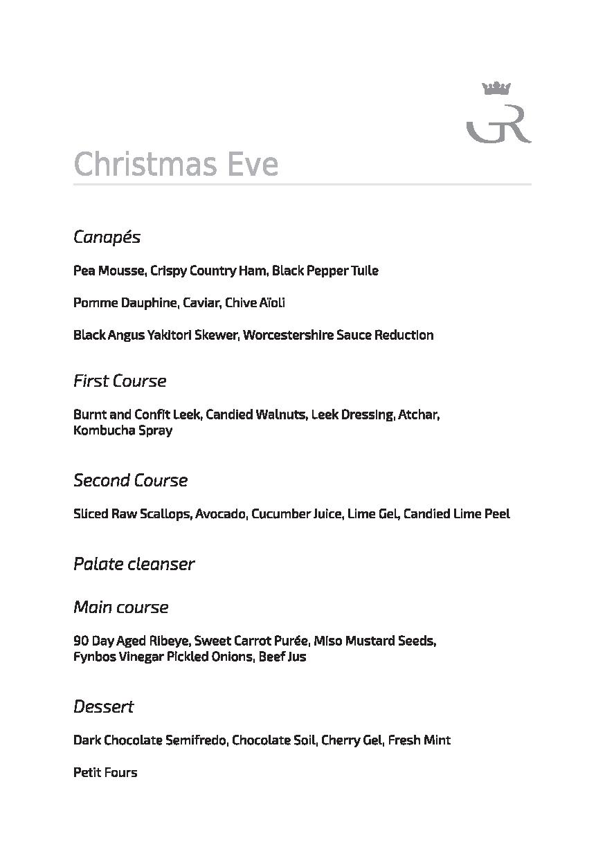 On Christmas Eve, they are offering a 4-course menu for R1695.