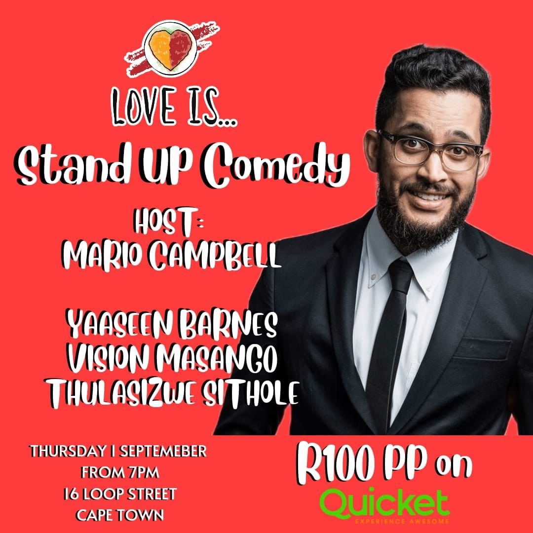 Love is Burgers is hosting a comedy night featuring Yaaseen Barnes, Vision Masango and Thulasizwe Sithole.