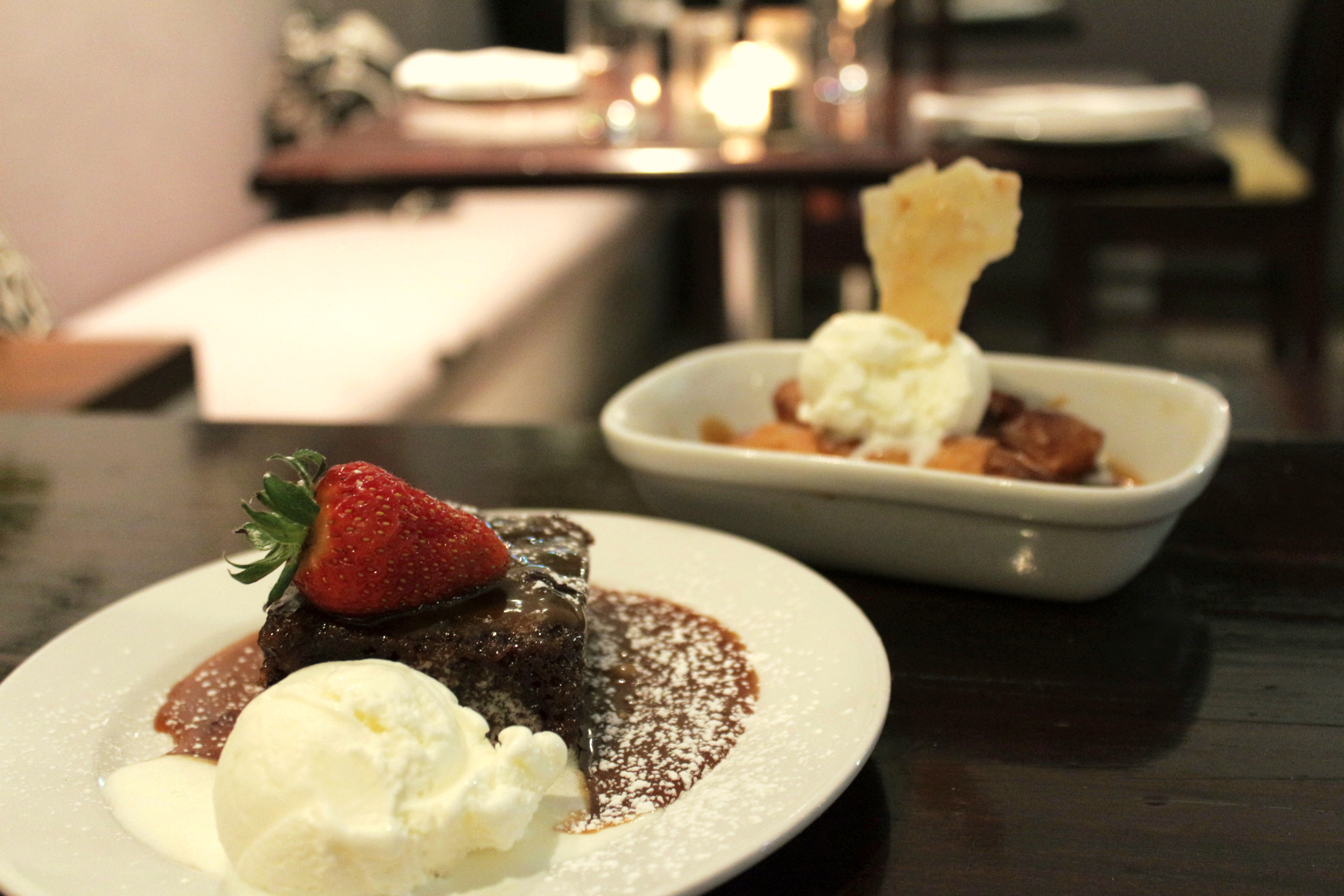 Both of these desserts are really delicious. The Malva pud was rich and dense, packed with pecan nuts and dates and served with vanilla ice cream. The Apple Cigars were crisp and light, and filled with cinamonny apples, then doused in salted caramel sauce and served with ice cream.