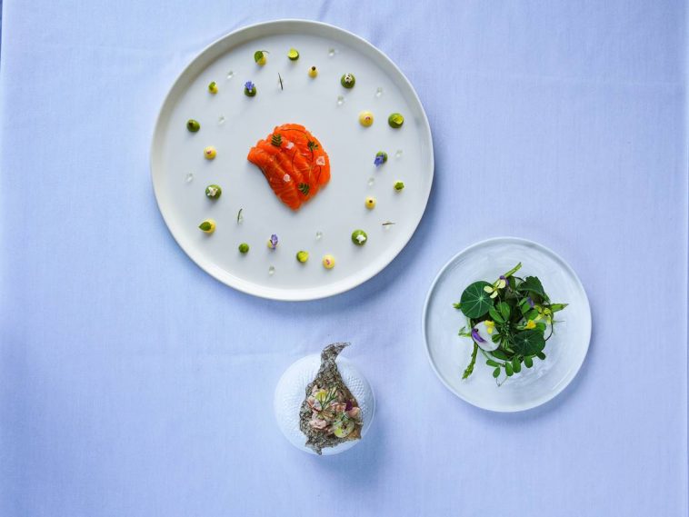 Chef Callan Austin won the S.Pellegrino Social Responsibility award. His cookbook recipe was inspired by the spring ingredients found around him in the Franschhoek valley, trout, foraged wild herbs and greens, plated beautifully into three dishes. It is simplified from his usual restaurant techniques so that home cooks can buy ready-made kewpie mayonnaise and yuzu caviar which Callan would usually make from scratch. “The herbed emulsion was also simplified by using mayonnaise as the base to blend in all the fresh herbs. In the kitchen, I would have made a coconut cream reduction or a buttermilk emulsion utilising a lot more aromatics and lengthy cooking techniques.” He gives easy instructions for curing and smoking the trout and, if you don’t have a smoking tray, suggests smoking the trout trimmings in a Weber. “If people don’t have access to nature to forage various herbs, I would suggest replacing the wild herbs with fresh fennel, dill fronds, store-bought edible flowers/garnishes, coriander shoots/leaves, small basil leaves, and deep-fried curry leaves for texture.”