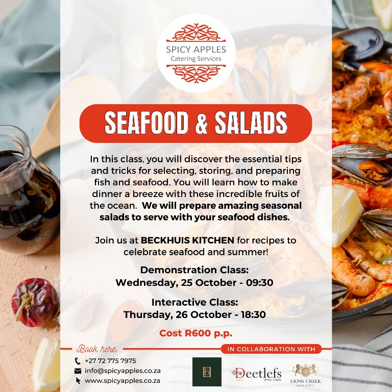 Spicy Apples is hosting a sensational Seafood & Salads Cooking Class on October 25th and 26th that you won’t want to miss.